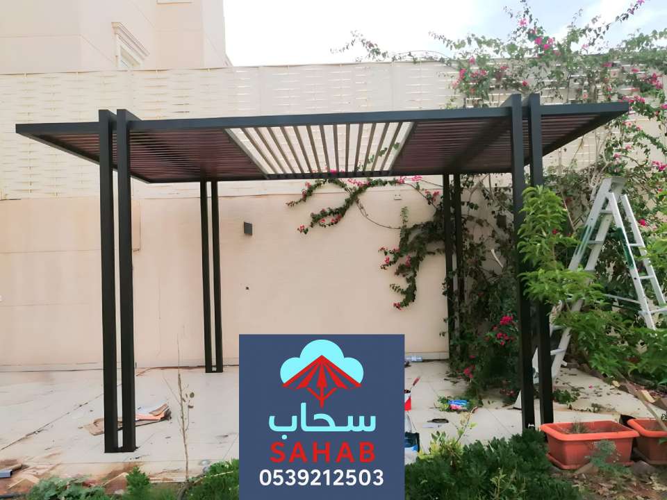 - مظلات حدائق حديد وهي قوية ومتانة عالية تتحمل الحرارة والرياح، تتوفر بتصميم عصري وفخم يناسب الفلل والمنازل الحديثة.